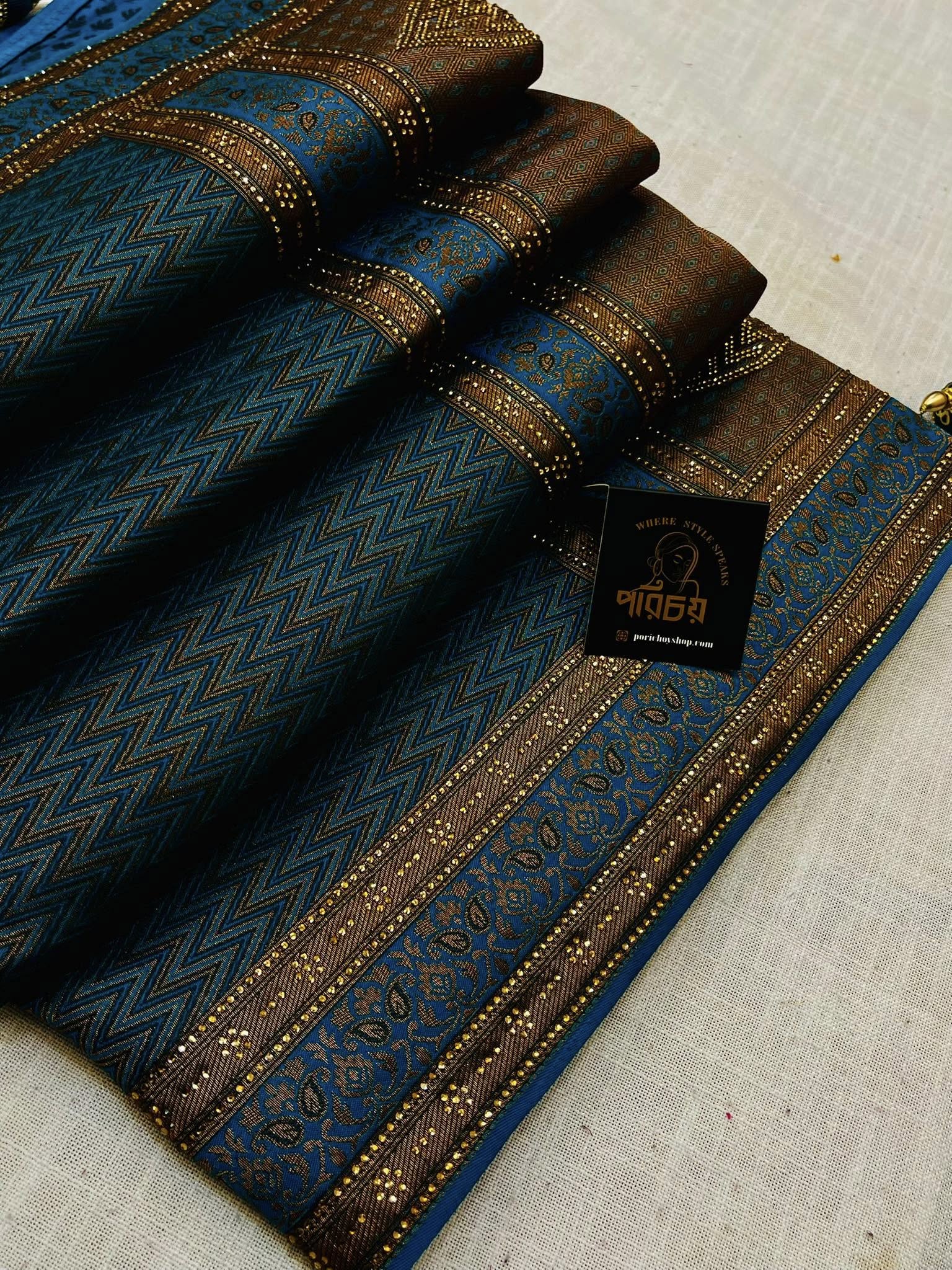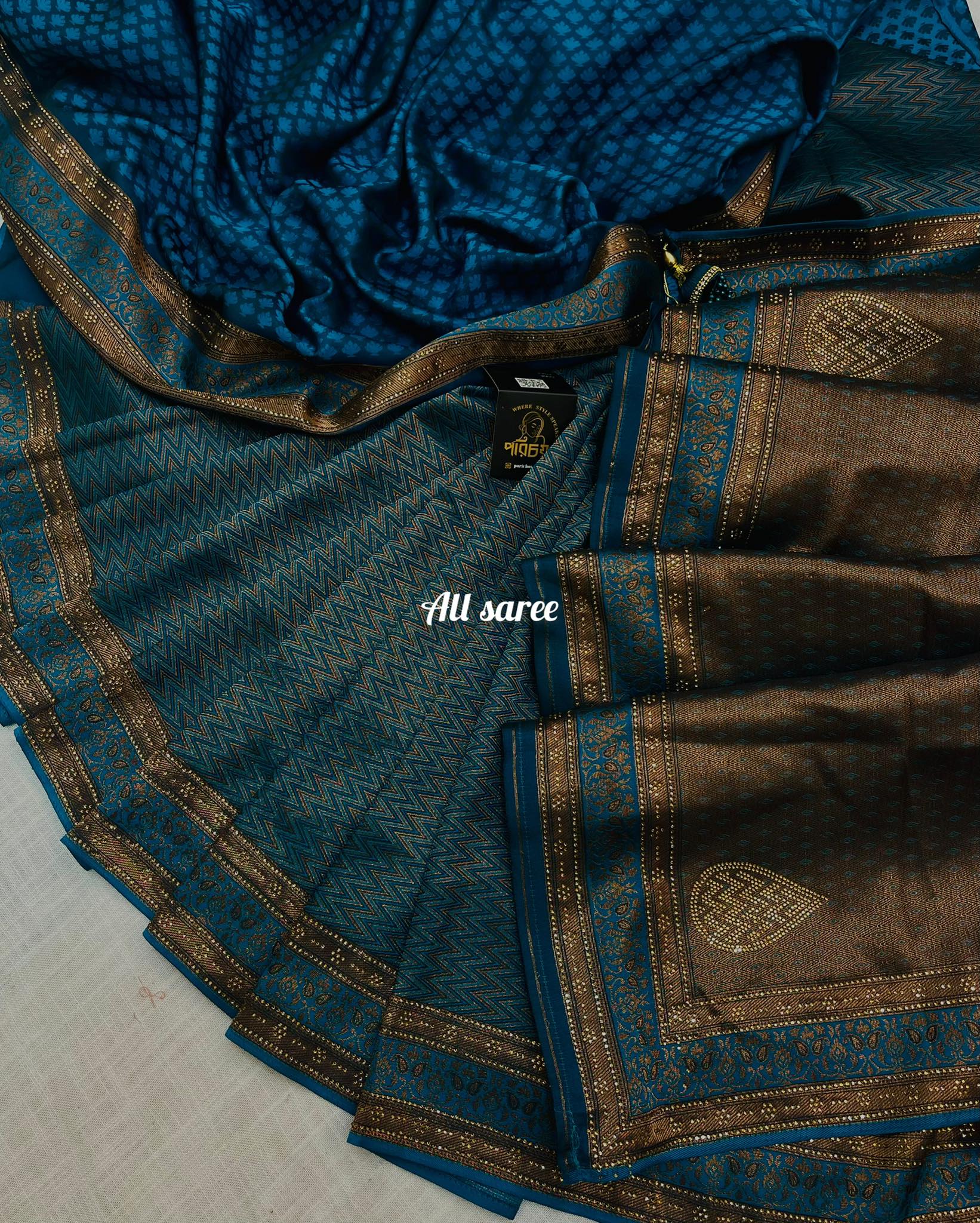 Details : Premium Soft Silk TANABANA saree Prime.💝100% Quality. Beautiful stone work all over the place 💝With Blouse 🥰🥰