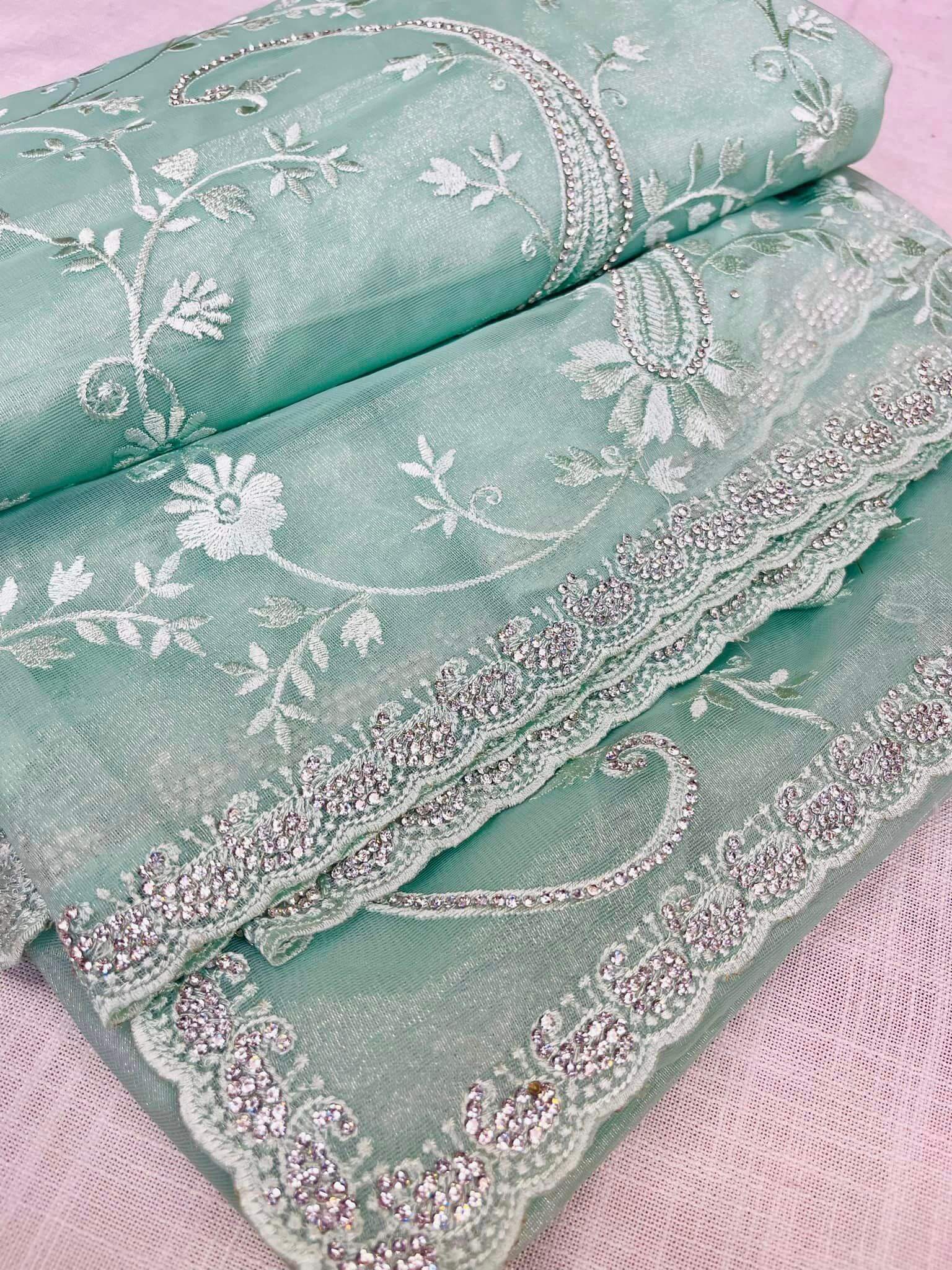 ❤Beautiful collection of Kashmiri Tila embroidery and stone work Kashmiri premium quality silk sarees.